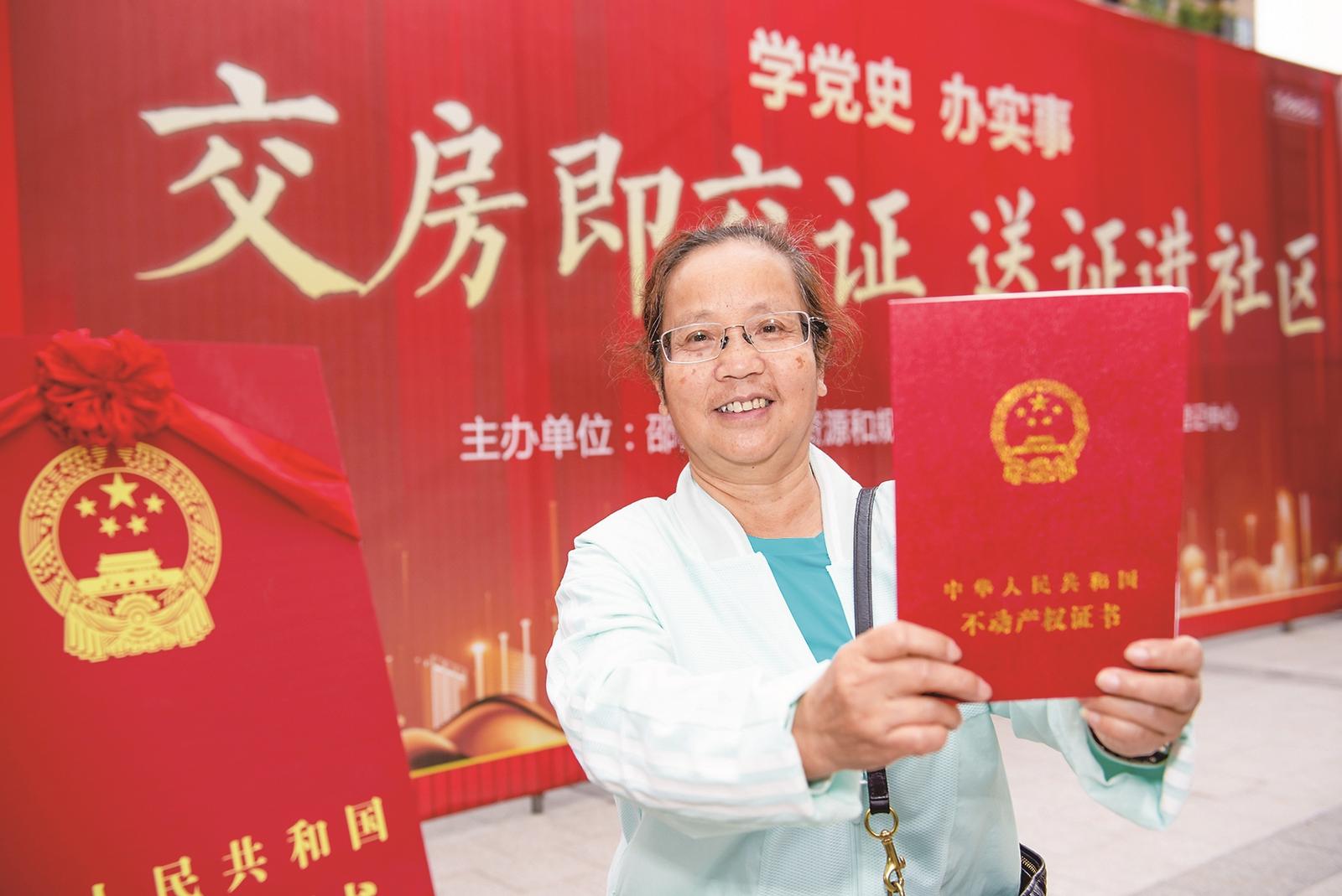 交房即交证,送证进社区,宝庆御园(北区)小区居民喜领不动产权证书。 唐明业 摄