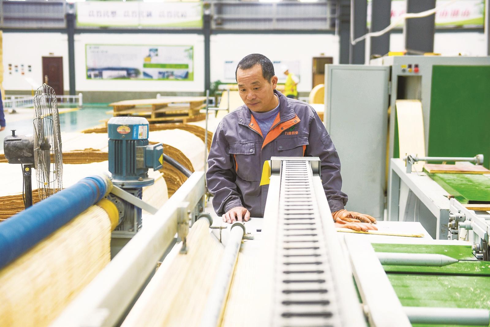 绥宁九通管业的工人正在生产加工竹制品。 申兴刚 摄