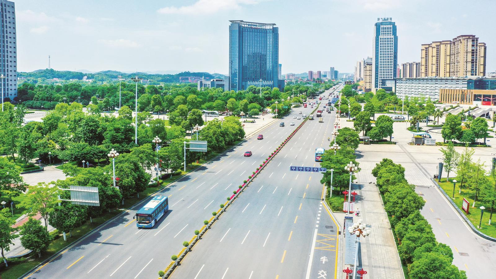 山河不语流千古。站在紫薇山之巅,只见邵阳大道贯穿东西,跨越资江、邵水,连接北塔、大祥、双清及邵阳经济开发区,三一集团邵阳产业园、中国特种玻璃谷、湘商产业园、邵阳东盟科技产业园、魏源广场、犬木塘水库尽收眼底。邵阳市城区实现从“平面规模扩张”向“立体质量提升”的深度变革。