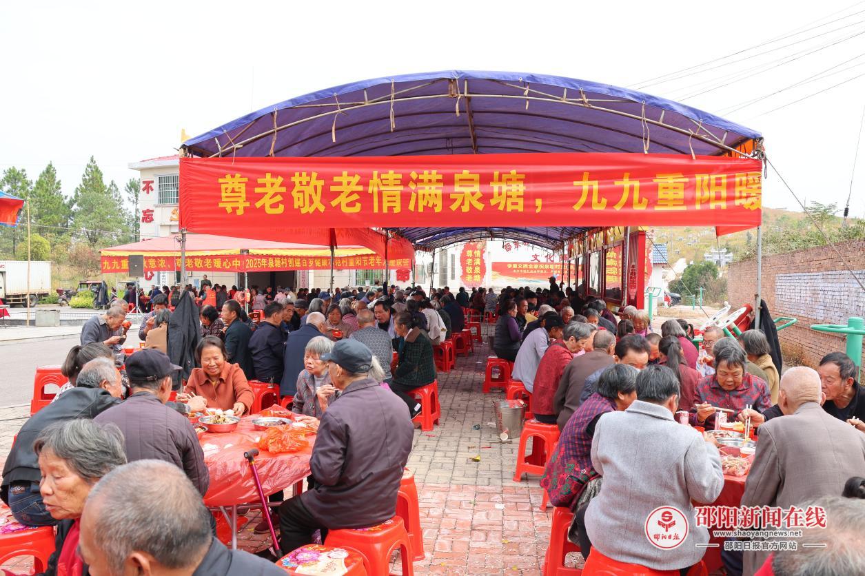 邵阳日报·邵阳新闻在线讯(通讯员 杨秀 彭栋)金秋送爽重阳至,敬老情浓满泉塘。10月29日上午,第二届“尊老敬老,情暖泉塘”重阳节百叟宴在百岁健康示范村——邵东市大禾塘街道泉塘村举办,300余位年逾古稀的老人欢聚一堂,共庆佳节。