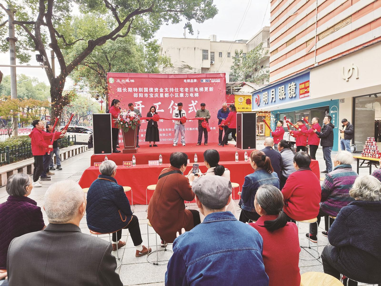 当日,超长期特别国债支持的宝庆星都小区老旧电梯拆旧更新项目正式开工,项目预计年内完成6部老旧电梯的全面更换,惠及小区360户居民。