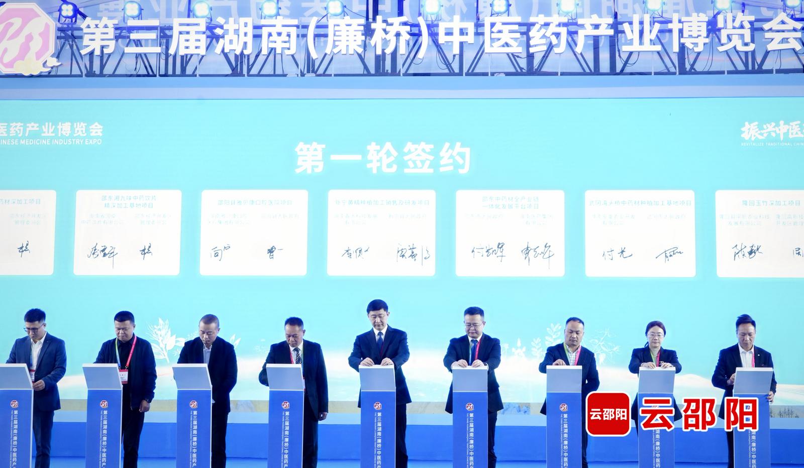 邵阳日报·云邵阳客户端11月8日讯(记者 杨立军 黄可乐 邓朝霞)11月8日,第三届湖南(廉桥)中医药产业博览会在邵东廉桥医药工业科技园开幕。开幕式现场签约18个中医药项目,签约总金额14.51亿元。副省长蒋涤非宣布开幕。