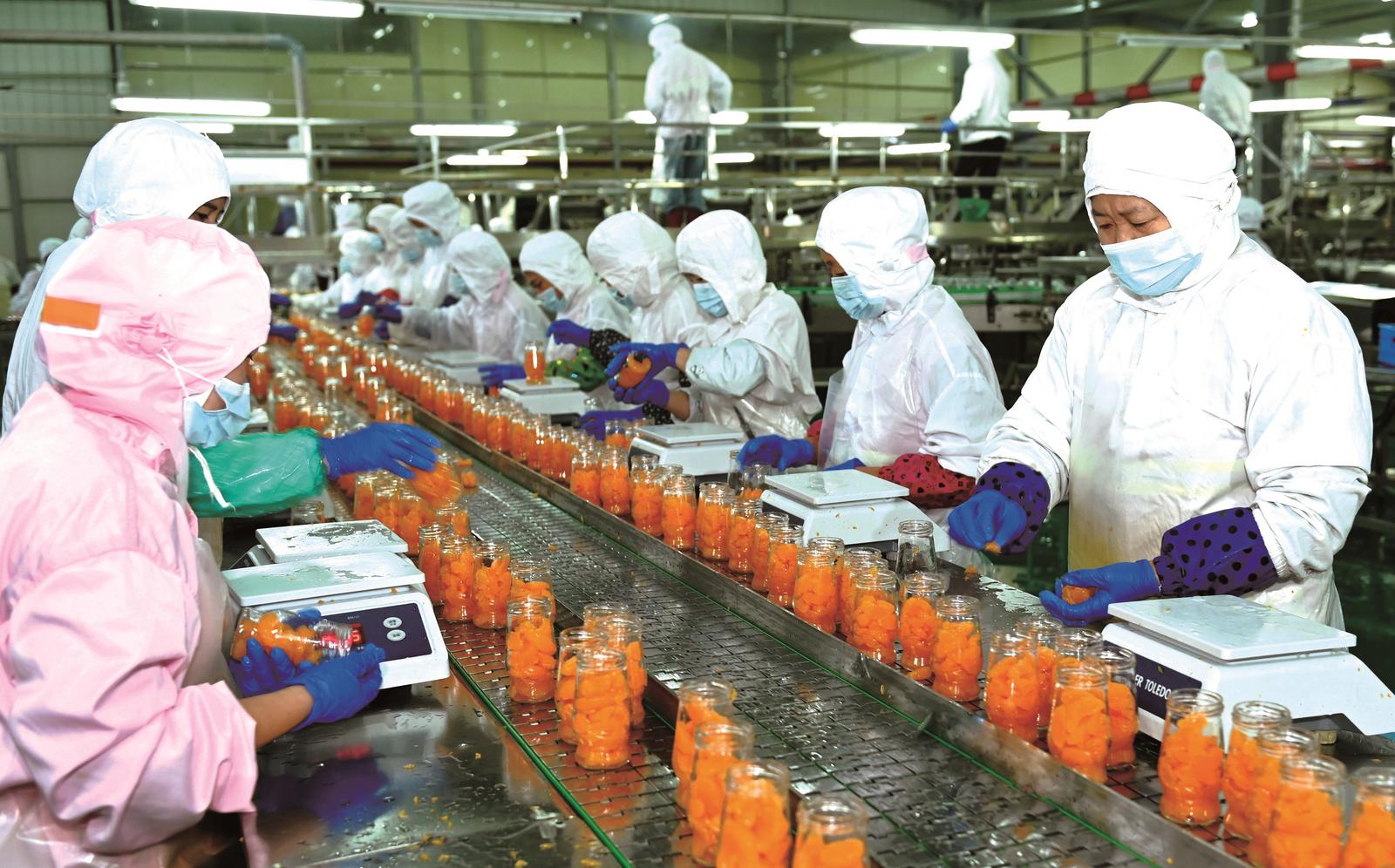 11月10日,洞口县辣妹子食品有限公司的员工在加工柑橘罐头。近年来,该县充分利用当地柑橘、花生、茶叶等资源丰富的优势,发展农产品深加工产业,促进农业增效、农民增收。 滕治中 摄