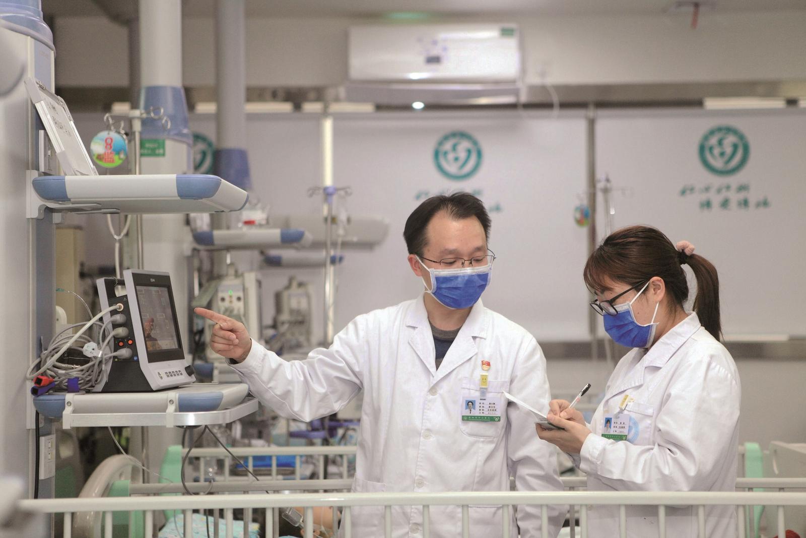 ▲医生在儿童重症监护病房(PICU)查房。