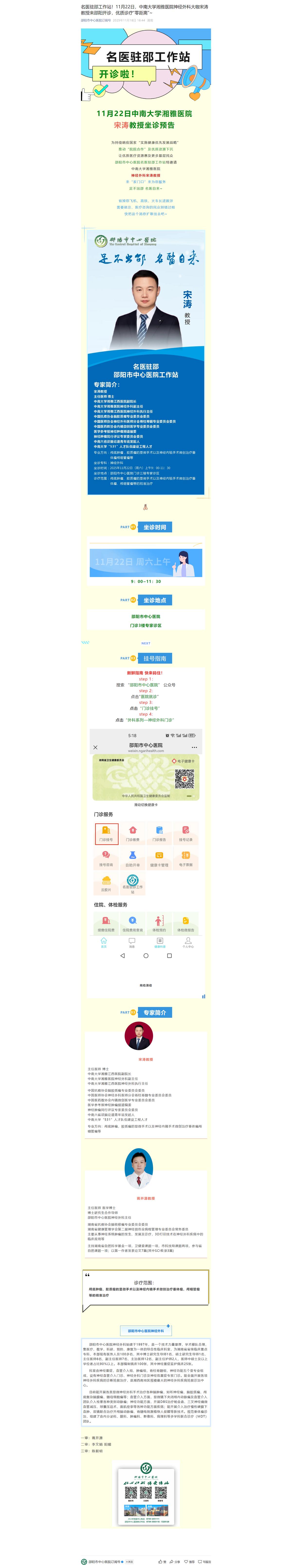 名医驻邵工作站!11月22日,中南大学湘雅医院神经外科大咖宋涛教授来邵阳开诊,优质诊疗“零距离”~
